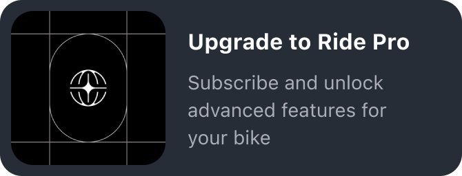 Vous ne voyez pas le bouton pour activer Ride Pro ? Assurez-vous d’être le propriétaire du vélo, car les cyclistes invités ne peuvent pas l’activer. Si vous êtes le propriétaire, vérifiez que vous avez la dernière version Beta et redémarrez votre application si le bouton n’est pas visible.